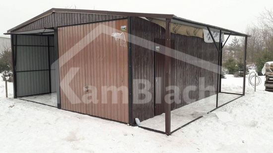 Garaż blaszany 7x6m z zadaszeniem wiatą konstrukcja profil blacha kolor drewnopodobna